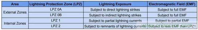 IEC/BS EN 62305避雷防護(hù)標(biāo)準(zhǔn)將雷擊風(fēng)險分為以下三類:直接雷擊;間接雷擊;以及雷擊造成的電磁能量。如表1所示,在避雷防護(hù)規(guī)劃中,需要將各區(qū)域劃分為高風(fēng)險區(qū)域(或稱避雷防護(hù)區(qū)域)以及雷擊潛在損害區(qū)域。上述標(biāo)準(zhǔn)將雷擊可能導(dǎo)致的損害分為以下三類:1)活體傷害;2)結(jié)構(gòu)的物理性損壞;3)內(nèi)部系統(tǒng)的失效。一般而言,對于任何可能給人類造成傷害的事物,均須設(shè)置層層預(yù)防措施。舉例而言,為了保障內(nèi)部人員的生命安全,醫(yī)院需要在外部結(jié)構(gòu)和內(nèi)部設(shè)備兩個層面設(shè)置大量的緩沖設(shè)施。