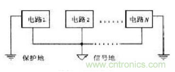 工作頻率低(<1MHz)的采用單點接地式,這意味著分布傳輸阻抗的影響是極小的。