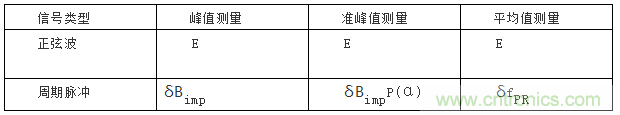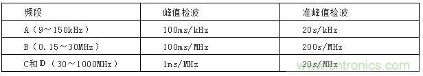 表5:騷擾測(cè)量?jī)x峰值測(cè)量時(shí)的指標(biāo)