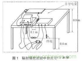 隨著各國(guó)電磁兼容標(biāo)準(zhǔn)的推廣和實(shí)施,人們?cè)絹?lái)越重視產(chǎn)品的電磁兼容性問(wèn)題,各大電子設(shè)備制造商也越來(lái)越注重產(chǎn)品的電磁兼容性測(cè)試,特別是電磁輻射騷擾是否達(dá)到相關(guān)標(biāo)準(zhǔn)要求。在輻射騷擾測(cè)試中,場(chǎng)地對(duì)測(cè)試結(jié)果的影響非常明顯。在不同的測(cè)試場(chǎng)地,相同的儀器儀表會(huì)得到不同的測(cè)量結(jié)果,所以各個(gè)暗室的測(cè)試數(shù)據(jù)存在著差異。EN55022:2010是歐洲旨在對(duì)適用范圍內(nèi)的信息技術(shù)設(shè)備無(wú)線電騷擾電平給出統(tǒng)一要求的試驗(yàn)標(biāo)準(zhǔn),規(guī)定了騷擾限值、測(cè)量方法、運(yùn)行條件和結(jié)果的處理要求。EN 55022:2010 輻射騷擾試驗(yàn)中,臺(tái)式設(shè)備要求放置在非金屬的桌子上,如圖1所示。標(biāo)準(zhǔn)中只提到桌面的大小通常為1.5m×1.0m,而對(duì)試驗(yàn)桌的材質(zhì)沒(méi)有明確規(guī)定。由于不同材料制作的試驗(yàn)桌介電常數(shù)不同,導(dǎo)致輻射騷擾測(cè)試結(jié)果不同。本文就試驗(yàn)桌對(duì)輻射騷擾測(cè)量的影響進(jìn)行定量分析。