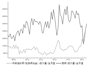 - 國內(nèi)下游銅需求的回暖以及國內(nèi)外價差的拉大是導(dǎo)致銅進口量大幅增加的主要因素