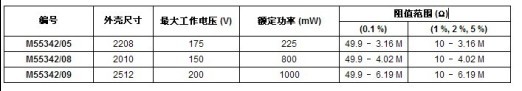 E/H器件的存放壽命穩定率為100ppm,工作溫度范圍為-55℃~+125℃。電阻提供抗靜電的華夫包裝或卷帶包裝,并可提供非標注的阻值。