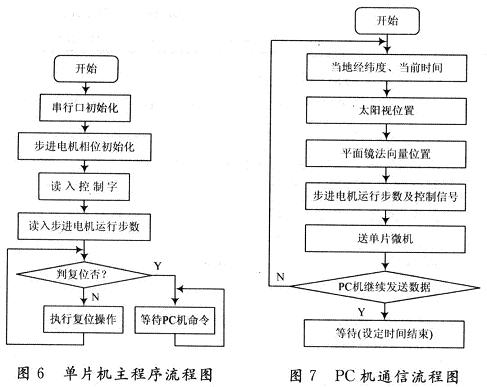 任意時刻太陽的位置可以用太陽視位置精確表示。太陽視位置用太陽高度角和太陽方位角兩個角度作為坐標表示。太陽高度角指從太陽中心直射到當?shù)氐墓饩€與當?shù)厮矫娴膴A角。太陽方位角即太陽所在的方位,指太陽光線在地平面上的投影與當?shù)刈游缇€的夾角,可近似地看作是豎立在地面上的直線在陽光下的陰影與正南方的夾角。系統(tǒng)采用水平方位步進電機和俯仰方向步進電機來追蹤太陽的方位角和高度角,從而可以實時精確追蹤太陽的位置。上位機負責任意時刻太陽高度角和方位角的計算,并運用軟件計算出當前狀況下俯仰與水平方向的步進電動機運行的步數(shù),將數(shù)據(jù)送給跟蹤系統(tǒng)驅動器,單片機接收上位機送來的數(shù)據(jù),驅動步進電機的運行。系統(tǒng)具有實現(xiàn)復位、水平方位的調整,俯仰方向的調整,太陽的跟蹤及手動校準等功能。[page]