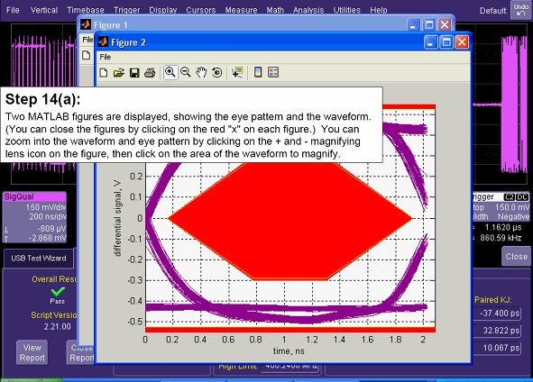 根據(jù)選擇好的測試項(xiàng)目,QualiPHY隨即展開一系列自動化測試過程:自動設(shè)置示波器工作參數(shù)包括采樣率、存儲深度、采集時間、縱軸刻度、觸發(fā)電平等;自動定義測量參數(shù);自動調(diào)用第三方軟件如Matlab對波形運(yùn)算,自動分析波形和測量結(jié)果,自動輸出分析結(jié)果,整個測試過程完全是自動化的,無需任何人工干預(yù)。在測試過程中會同步顯示測試狀態(tài)和過程提示。
