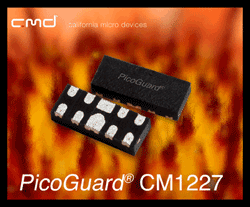 California Micro Devices推出超低電容的ESD器件CM1227,PicoGuard CM1227 ESD器件超低通道輸入電容為0.35pF,適合用于高速數(shù)字消費電子應(yīng)用中。該器件可提供4個通道的±15kV接觸ESD保護(hù),超過了IEC61000-4-2 4級標(biāo)準(zhǔn)。