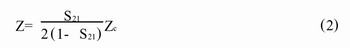 網(wǎng)絡(luò)分析儀測量并結(jié)合一定的校準方法(TRL)可算出電容的散射參數(shù)S21o由微波網(wǎng)絡(luò)理論可知: