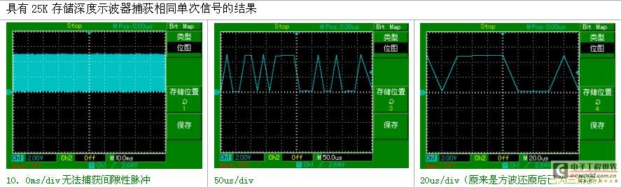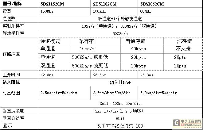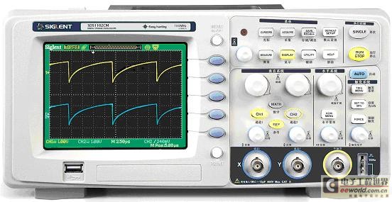 由此看來,在存儲深度一定的情況下,采樣率越高,采樣時間就越短。隨著信號的日益復雜,想要完整地呈現信號的全貌或是信號間的相對關系,單憑高采樣率無法實現,還需要長時間的采樣捕捉獲得較長的信號。傳統示波器,在此需求下,采樣率和采樣時間本身是矛盾的,既需要高采樣,又需要長采樣時間,在存儲深度一定且不大的情況下,是根本無法實現。經過創新性設計的SDS1000CM系列數字示波器,擁有同級別產品中最大的2Mpts存儲深度,完美地調和這兩者的矛盾。提高示波器的存儲深度可以間接提高示波器的采樣率。以一臺采樣率為1Gsa/s、存儲深度為20K的示波器為例來說,只要水平掃描速度在20ns/div以上時基,采樣速度就會急速下降。因為當需要測量較長時間的信號波形時,必然要求大的時基檔位,這就造成采樣率的下降,采樣率的下降可能會遺漏信號的細節勢必造成信號波形質量的下降。這時候就需要大的存儲深度來維持更高的采樣率來采樣測量。長存儲在保證獲取不失真的波形的同時又可以觀察更長時間的信號。