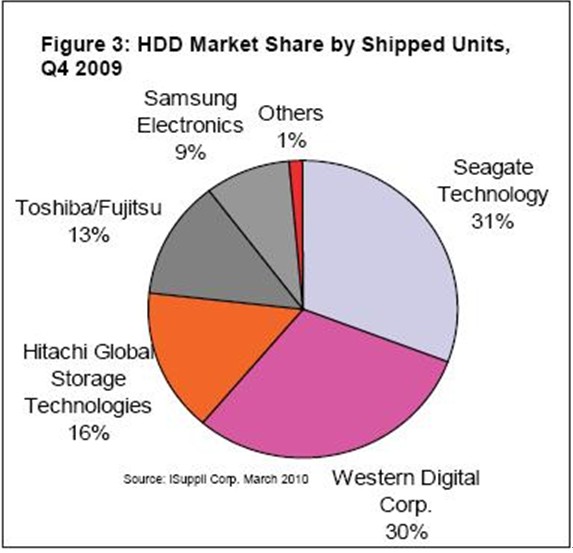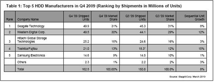 iSuppli公司預計希捷在2010年第一季度將保持榜首位置,而西部數據仍將緊隨其后。
