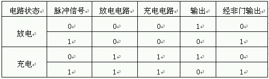 將A、B兩點(diǎn)與脈沖信號均接入與非門的輸入端,再經(jīng)一個非門輸出信號。這樣,就可構(gòu)成了一個邏輯關(guān)系。如表1。接到電池兩端,這里可以用一個開關(guān)TWH8778來連接。