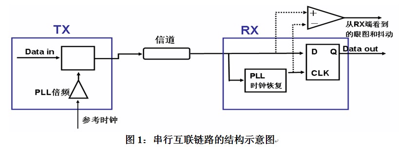 從整個鏈路的組成來看,發送器參考時鐘的抖動在串并轉換時就引入到整個鏈路中,影響著TX端發送出的數據的抖動,而接收器要從這些數據中恢復出時鐘來進行后續的處理。可以看出發送器參考時鐘的性能對整個鏈路的性能起到很關鍵的作用。本文從時鐘抖動的相關概念、測試實例、測試注意事項、測試難點幾方面對時鐘抖動測試進行分析和探討。