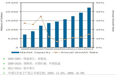 - 汽車電子,2010年—2013年將會(huì)是穩(wěn)步增長(zhǎng)期