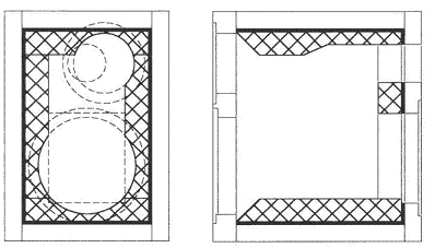 上式中,kn是箱體系數,對于設計良好的低音反射式音箱,kn=2x10-6;對于優質的密閉式音箱則kn=10-6。箱體容積VB的單位是l(升),f3的單位是Hz(赫)。因此,若要減小箱體容積,就必須升高-3dB低頻滾降頻率使低頻響應變差,再不然就只好允許音箱在較低的頻率下工作。如今的大功率功放一般都具有足夠的功率富余量,用它們驅動低頻率音箱已不成問題,因此某些精心設計的小音箱也有可能具有較寬的帶寬和較好的低頻響應。當然,箱體容積不能無限制地減小,以免超過揚聲器功率極限而燒壞音圈或增大音箱的非線性失真。