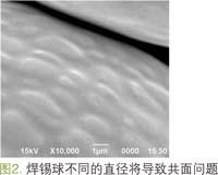 最后但同樣重要的影響因素是焊球的幾何尺寸、直徑和圓度。大多數(shù)焊球供應(yīng)商采用x和y兩個(gè)方向測(cè)量其焊球的直徑。這不是最佳的,因?yàn)楹苋菀族e(cuò)過(guò)最大的和最小的焊球直徑。圓度也是一個(gè)需要考慮的因素,但只有極少的焊球供應(yīng)商考慮到。