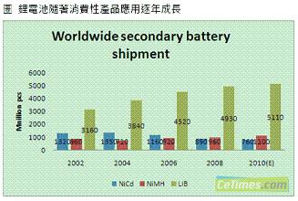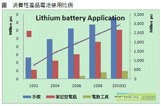 消費性產品的發展趨勢迅速牽動電池產業,根據集邦科技(TrendForce)旗下研究部門EnergyTrend表示,鋰電池隨著量產數量增加,價格與性能也逐漸為消費者所接受,包括手機電池與NB電池,也以鋰電池為使用主流,而伴隨著新材料的革新,動力鋰電池也成功在電動工具以及兩輪車輛上展露頭角,讓鋰電池突破僅有消費性產品的應用局限。