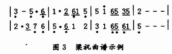 因此,可以所選曲譜的最短音符作為時值的度量單位。比如,圖3所示的《梁祝》曲譜中最短的音符為8分音,若其編碼存放1個存儲單元,則時值計數(shù)脈沖周期為一個8分音長時間,可選O.5s。曲譜中的四分音符碼需要存放2個單元,一拍延長音也需要2個單元。該段曲譜有8個音節(jié),每個音節(jié)是一個全音(8個8分音),演奏總時值為8×8個8分音。所以,存儲曲譜編碼的存儲器需要64個存儲單元。