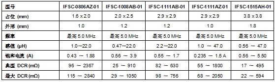 5款新器件采用0806、1008、1111和1515外形尺寸的具有1.0mm的超低外形,最高頻率達(dá)5.0MHz,感值高達(dá)47µH