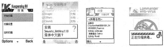 (3)針對(duì)目前智能手機(jī)感染的典型病毒:CommWarrior、Cabir手機(jī)病毒和Mabir.A手機(jī)病毒,各軟件公司已經(jīng)陸續(xù)推出了一些防病毒軟件,如NetQin手機(jī)殺毒系統(tǒng)、金山手機(jī)毒霸、卡巴斯基手機(jī)殺毒軟件、光華反病毒手機(jī)殺毒軟件SymbianS60、TSG_Phone_Safe_殺手機(jī)病毒軟件、Anti-Virus.v1.10、Simworks_AnitiVirus_1.16等。各運(yùn)營(yíng)商可以推薦用戶進(jìn)行相關(guān)軟件的加載,手機(jī)廠家也可以根據(jù)自身情況出廠時(shí)預(yù)裝一些殺毒軟件(見(jiàn)圖5)。
