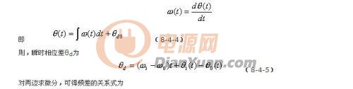 式中的ωi為輸入信號的瞬時振蕩角頻率,θi(t)和θO(t)分別為輸入信號和輸出信號的瞬時位相,根據相量的關系可得瞬時頻率和瞬時位相的關系為:
