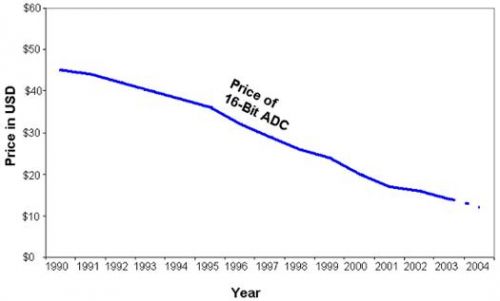 圖9 16-位模數(shù)轉(zhuǎn)換器的價(jià)格下降曲線
