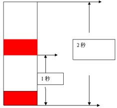 假設落料秤從開啟電磁閥到落到袋里大約有2s的時間。實際切袋速度為每分30袋到120袋,以每分60袋來算控制,控制過程如圖4所示,左邊為下料信道,在設定速度為60袋時需先打開電磁閥,等即將落到底部時啟動拉模及封切。