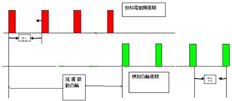 現在主要的問題是如果以時間為周期,開啟電磁閥,無法使實際運行的凸輪周期與其完全吻合。只能以實際凸輪運行周期促發電磁閥,才可以保證周期完全吻合。在凸輪未運行之前,先用時間促發電磁閥。在前面兩個周期,凸輪實際未走,用時間周期促發電磁閥,等到第三個周期凸輪才實際運行。切換到設定角度輸出電磁閥,這樣既解決了凸輪延遲啟動無法依靠角度促發放料電磁閥的問題,又解決了單純依靠時間促發電磁閥,長期運行放料周期與凸輪運行周期累積誤差的問題,如圖8所示。