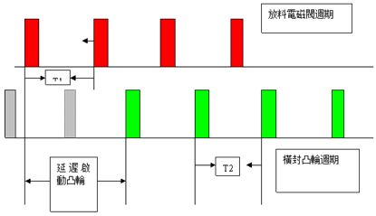 每次當前橫封的為前隔一袋的,圖6為基本60袋的時序圖,對應不同速度時序圖也要改變假設是120袋,500ms一個周期,前面需提前依次打開可能四次電磁閥;熱封凸輪第一次熱封的是開始放料的第一袋,是已經放的第四袋。熱封啟動前在空中料道內已有四袋。