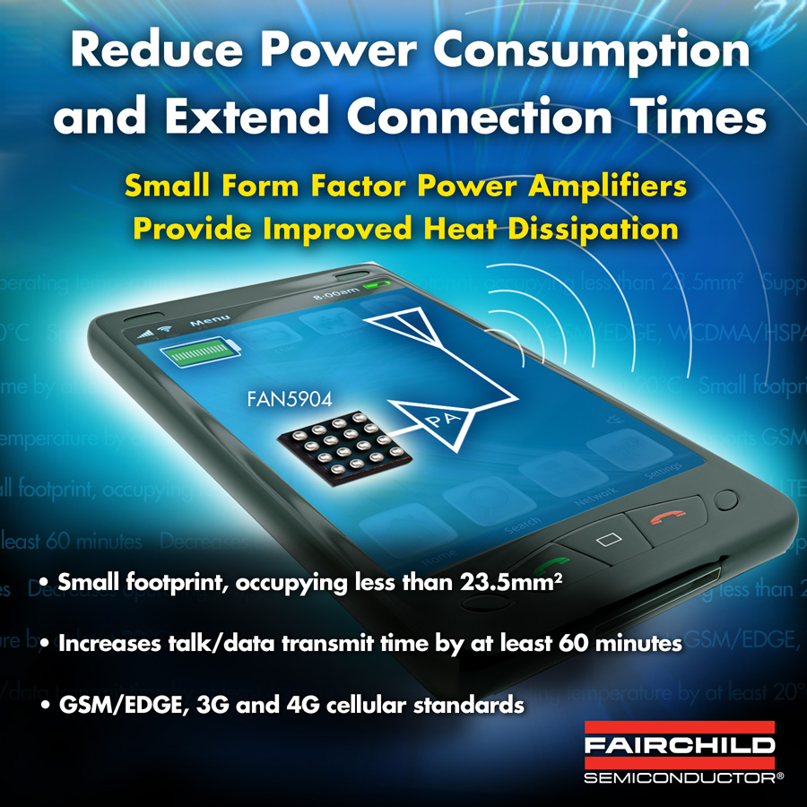 作為正在實(shí)施的便攜產(chǎn)品計(jì)劃的一部分,飛兆半導(dǎo)體通過與客戶密切合作開發(fā)出FAN5904器件,這是一款支持GSM/GPRS/EDGE、3G/3.5G 和4G功率放大器(PA)的大功率高效同步降壓轉(zhuǎn)換器,能夠降低無(wú)線便攜設(shè)備的功耗,將連通時(shí)間延長(zhǎng)60分鐘以上。FAN5904具有小于23.5 mm2的占位面積,還能夠在維持射頻性能的同時(shí),將功率放大器的工作溫度降低至少20ºC。