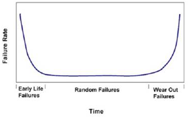 圖1“浴盆”形曲線顯示了半導(dǎo)體故障率隨時(shí)間變化的情況
