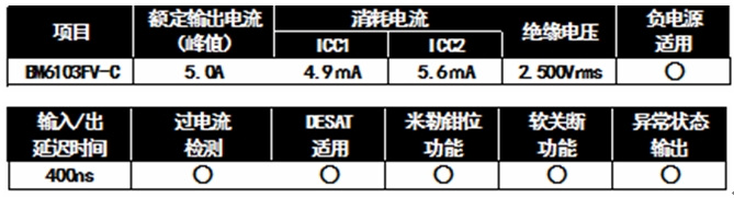 內置了車載逆變器電路所要求的全部保護功能:米勒鉗位功能、故障輸出功能、低電壓時誤動作防止功能、熱保護功能、短路保護功能、短路保護時軟關斷功能。
