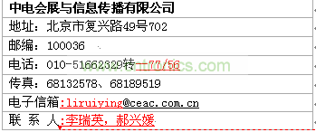 收款單位:中電會(huì)展與信息傳播有限公司
