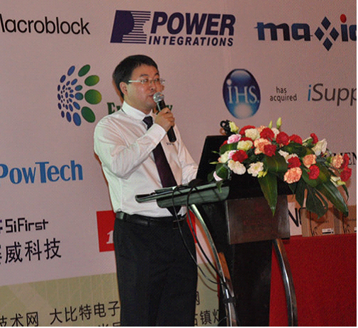 聚積科技照明產品總監俞仲威帶來了《LED照明IC設計與電源模組應用趨勢》。首先講述LED照明發展的市場,再分析LED燈管的發展,講解不同燈具對模組設計帶來的沖擊、LED應用趨勢,最后拋出可控硅調光的議題,與現場聽眾進行了探討。
