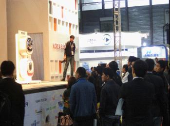 掛在墻上的洗衣機和用腦波開火車是第80屆中國電子展上極具震撼的場景,現場觀者如潮。在2012亞洲電子展的韓國大宇電子的展臺上,那些形似微波爐的產品其實是壁掛式滾筒洗衣機,雖然重量只有3公斤,但功能卻相當齊全。不遠處的展臺上,一列跑得慢吞吞的玩具火車開動起來不再依靠遙控器,而是人類的腦波。Stream TV展出的42寸裸眼3D顯示裝置,搭載了tream TV獨家的Ultra-D裸眼3D影像技術,據公司客戶經理呂昱葳介紹,任何時間,任何地點,Ultra-D技術都可以把用戶所有的電視節目甚至家庭錄影實時轉換成裸眼3D效果。