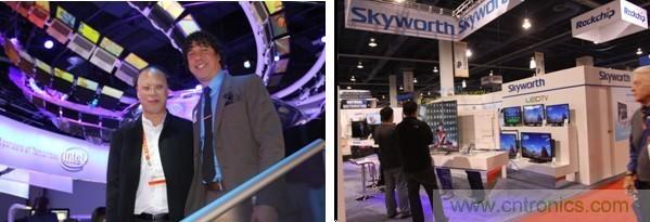 (左圖為市平板顯示行業協會副秘書長梁毅與Inter公司的victor合影;右圖為中國企業創維展位)