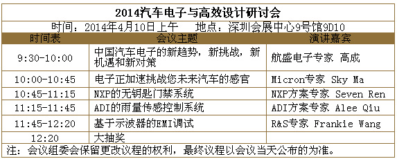 1.汽車電子和高效設計研討會(4月10日上午,深圳會展中心9號館9D10)