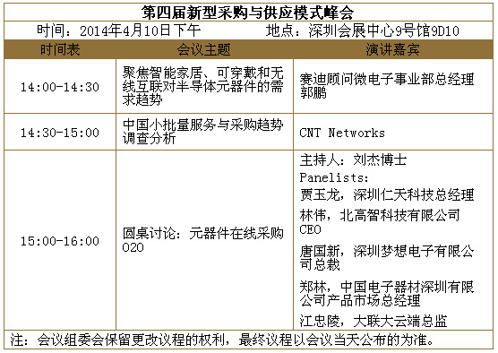 此次峰會旨在幫助供需雙方的經理人了解熱點市場帶來的對半導體元器件的需求變化,中國小批量供應服務與采購趨勢。圓桌討論將針對采購和供應中的熱點話題,中國電子分銷商聯盟秘書長劉杰博士與行業領先的國內和國際分銷商總裁和總監們逐一分享思路,歡迎參與互動。參會可以通過網上或微信(關注我愛方案網),報名注冊:www.sz-bosch.com/seminar/95/agenda