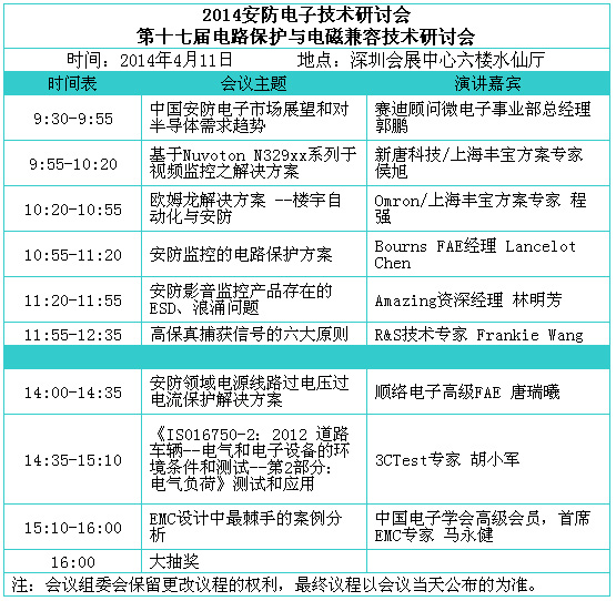 3.2014安防電子技術研討會暨第十七屆電路保護與電磁兼容技術研討會 (4月11日,深圳會展中心六樓水仙廳)