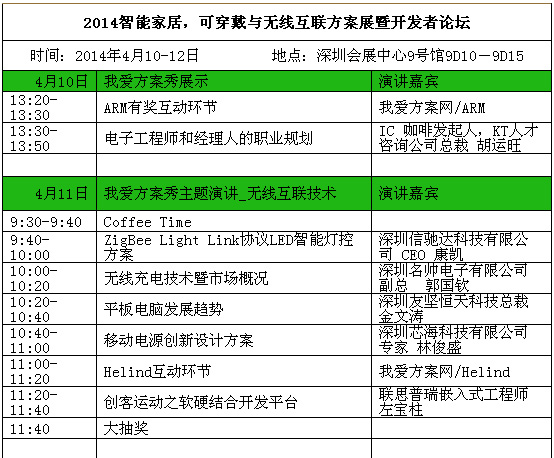 4. 三大熱點活動:智能家居,可穿戴與無線互聯方案展暨開發者論壇(4月10-12日,深圳會展中心9號館9D10-9D15)