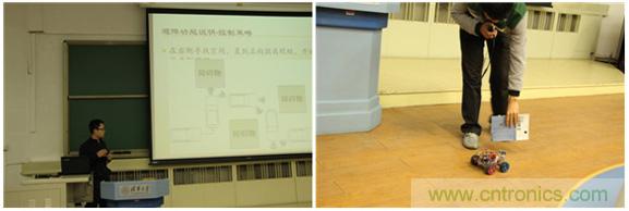 經過激烈的角逐,進入決賽的七支隊伍在決賽階段依次為大家展示了他們設計的作品,“Hercules汽車智能避障安全系統”、“主動避障智能小車”、“基于PID的牽引和制動力控制”等作品都各具特色。評委針對每一支隊伍的作品和展示進行了點評,給各個作品的不足之處都提出了建議,在場所有選手都受益匪淺。最終由王翔宇同學帶領的團隊所設計的“分布式驅動小車的安全性設計”憑借新穎的設計和完善的算法獲得了本次大賽的一等獎。