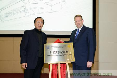 圖一從左至右:同濟大學儲志剛書記浩亭公司Edgar-Peter Duening先生與共同為競賽的開幕揭牌
