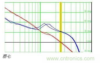 我們有可能會看到的相位裕量不能達到要求。如下圖七,只有30度左右。這個時候,只有調(diào)試不同的參數(shù),才能得到比較好的結(jié)果。從而滿足系統(tǒng)穩(wěn)定性的要求。
