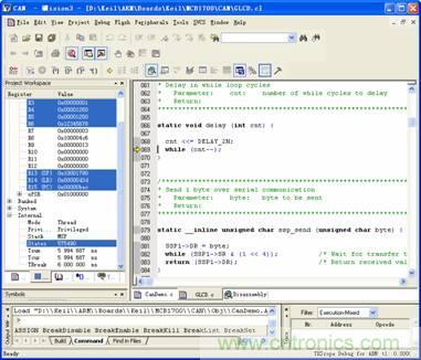 在Keil MDK環(huán)境下,進(jìn)入仿真狀態(tài)之后,打開【Debug】菜單下的【Breakpoints】選項。在Breakpoints窗口即可定義變量操作斷點。