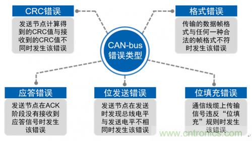 CAN-bus的可靠性很高,但是在某些情況下還是發生錯誤,為了使數據能夠在總線上可靠傳輸,CAN-bus規范對各類幀的格式、用途及發送時機都進行了詳細的規定。下面我們來總結下在CAN通訊中會出現哪些錯誤。