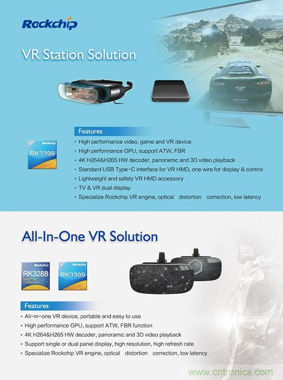 作為中國VR解決方案布局最早的芯片商,CES2017瑞芯微展示了成熟可產(chǎn)量的VR終端設(shè)備,包括可支持語音識別的VR一體機(jī)及VR分體機(jī),并且可支持VR攝錄機(jī)的SD卡直接播放功能。