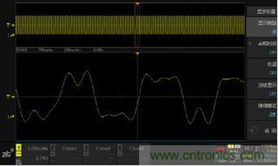 因此無論前面采用的是何種插值方式,采樣停止后放大的波形都會以鋸齒狀呈現(xiàn)出來,這是插值保持的原因,也是完全正常的。因此,我們在觀測波形的時候一定要讓波形盡量鋪滿整個屏幕,如果波形出現(xiàn)了鋸齒,也要清楚鋸齒的原因來自于哪里。