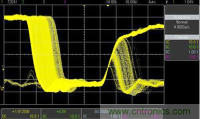 ·波形更新速率。示波器具有較高的板上波形更新速率,能夠查看意外事件和毛刺。一旦發現隨機事件,您可以調整示波器的增強觸發來捕獲感興趣的事件。