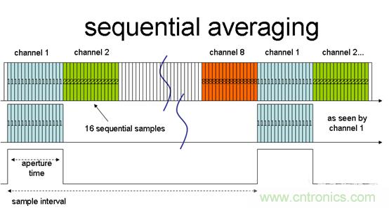 這種傳統的對單一通道信號進行多次轉換后才轉到下一個通道的平均模型被稱為序列平均。這種方法存在一些限制,主要問題在于會降低多通道環境中的可用采樣率,包括被平均的通道和序列中不需要平均的通道。