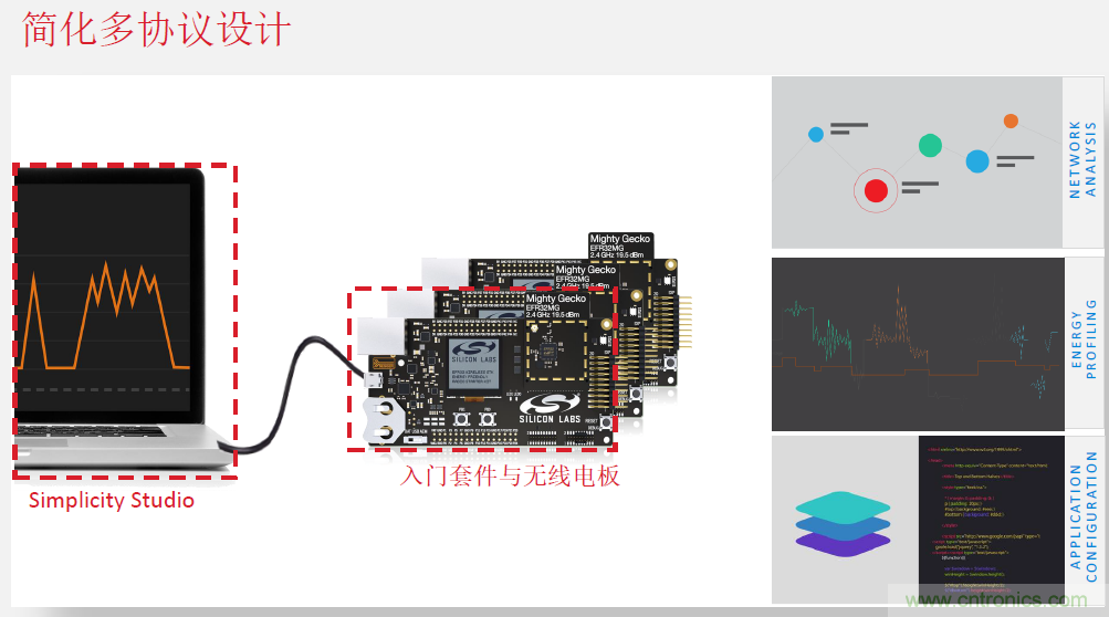 圖:Silicon Labs的無線模組和多協議 SoC采用了世界最小的SiP模塊級微型設計,可以降低BOM成本并支持OTA設計。設計開發者還可以直接采用Silicon Labs的APP軟件進行功能調試。