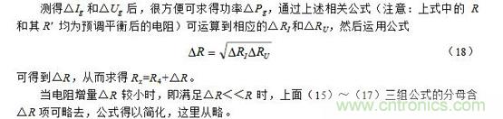 注意:上面(7)~(9)式中的R和其R′ 均為預調平衡后的電阻。此外,當電阻增量△R較小時,即滿足△R《《R時,上面(7)~(9)三式的分母中含△R項可略去,公式可得以簡化,這里從略。