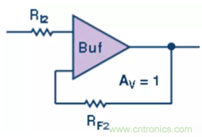 第三級,將結果形成的通道信號施加到單位增益緩沖級放大器 (圖4)。使用電阻是為了減少輸入偏置電流不平衡。