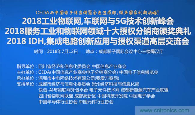 【導(dǎo)讀】中國芯片產(chǎn)業(yè)如何快速騰飛?CEDA認為,通過應(yīng)用方案和授權(quán)渠道能快速占領(lǐng)市場。作為電子元器件的授權(quán)代理商協(xié)會組織,CEDA在中國信息產(chǎn)業(yè)商會的領(lǐng)導(dǎo)下服務(wù)國家創(chuàng)新和供應(yīng)鏈戰(zhàn)略。7月12日(中國電子信息博覽會期間),CEDA將在成都世紀城驕子國際會議中心舉辦2018工業(yè)物聯(lián)網(wǎng), 車聯(lián)網(wǎng)與5G技術(shù)創(chuàng)新峰會,嘉獎服務(wù)工業(yè)與物聯(lián)網(wǎng)領(lǐng)域的優(yōu)秀電子元器件授權(quán)分銷商并舉辦IDH,芯片設(shè)計公司,元件公司和授權(quán)代理商高層的交流會。